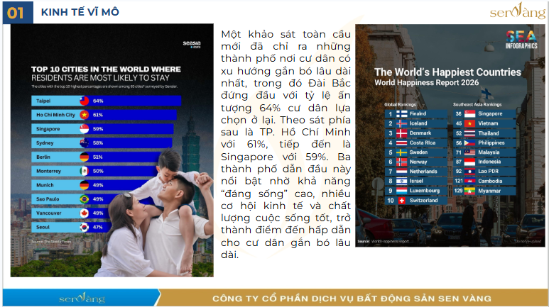 - Chỉ số hạnh phúc: Việt Nam đứng thứ 45 thế giới, xếp thứ 2 tại Đông Nam Á (sau Singapore), vượt qua Thái Lan, Philippines và Malaysia.