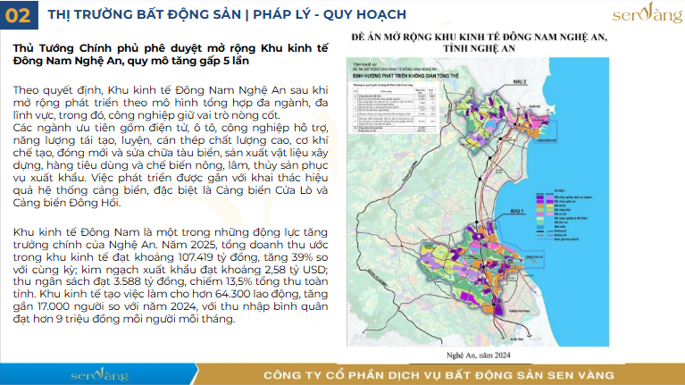 - Nghệ An: Mở rộng Khu kinh tế Đông Nam gấp 5 lần, kỳ vọng trở thành cực tăng trưởng mới miền Trung.