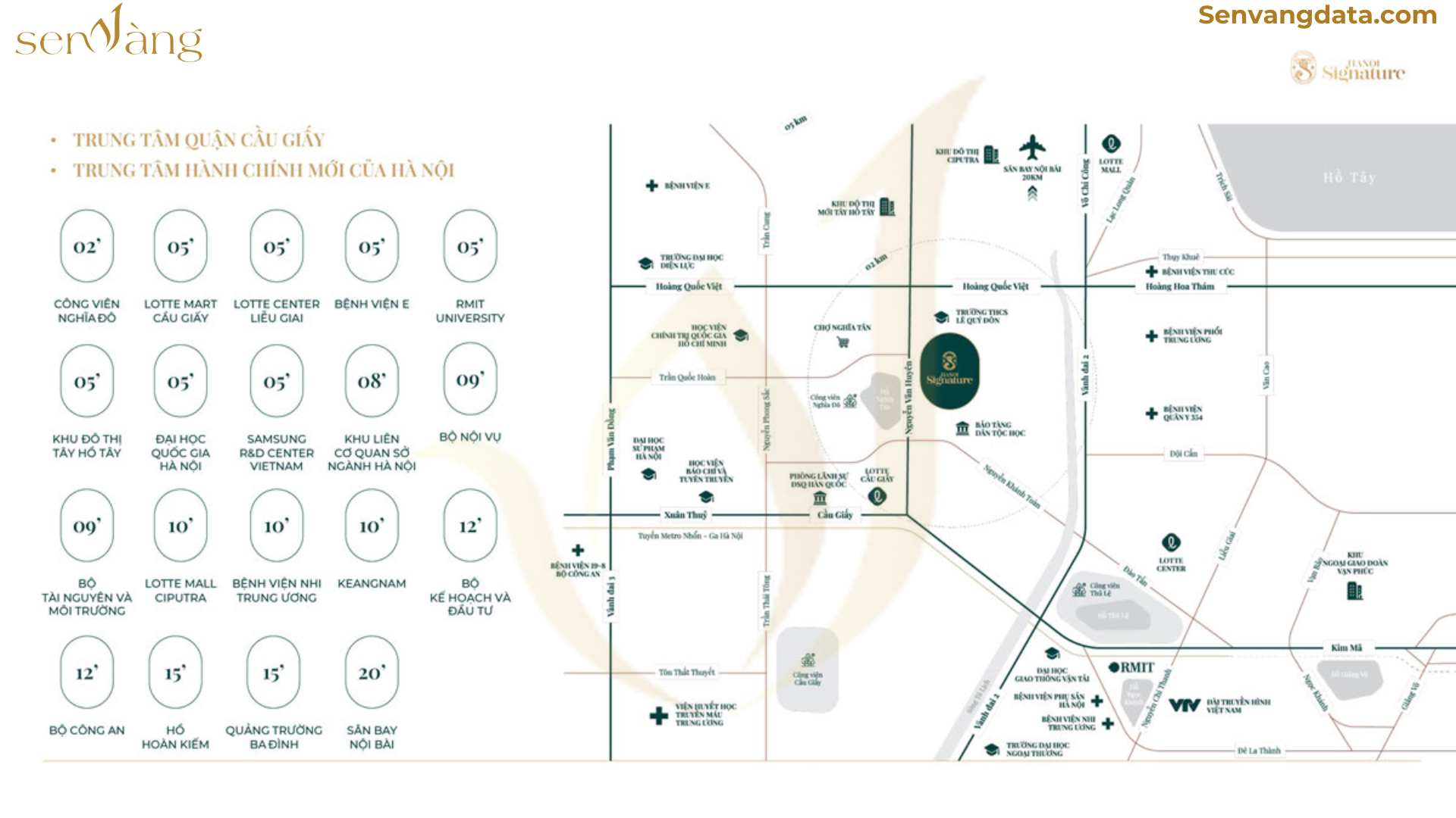 Signature thừa hưởng hạ tầng sẵn có của quận Cầu Giấy – nơi tập trung các trường quốc tế, bệnh viện chất lượng cao, trung tâm thương mại và mạng lưới giao thông kết nối với sân bay, trung tâm ngoại giao Tây Hồ và khu vực lõi đô thị Hà Nội.