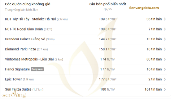 • Phân khúc hyper-luxury: Mức giá 120 – 160 triệu đồng/m², thuộc nhóm cao nhất tại Hà Nội, định vị Signature trong top siêu sang cùng với The Grand Hanoi – Lotte Mall.