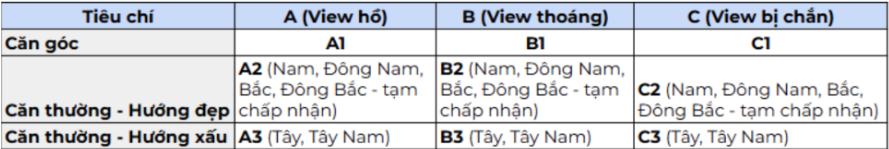 Tiêu chí đánh giá căn hộ loại A,B,C theo tiêu chí của Sen Vàng Group