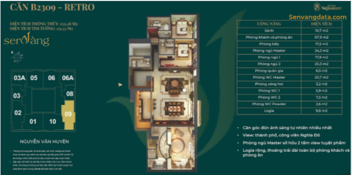 Loại Penthouse: 2 căn, diện tích 1383.27m2 – 1475.88m2.