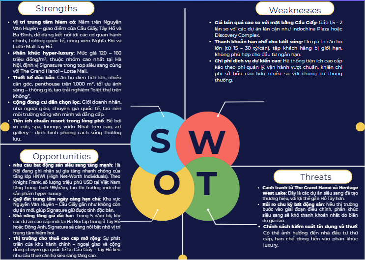 • Khả năng tăng giá dài hạn: Trong 5 năm tới, khi các dự án cao cấp mới tại Hà Nội tập trung ở Tây Hồ hoặc Đông Anh, Signature sẽ càng nổi bật nhờ vị trí trung tâm hiếm hoi.