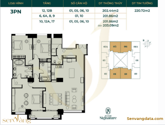 Loại 3PN: 228 căn, diện tích 151,65m2 – 239,13m2