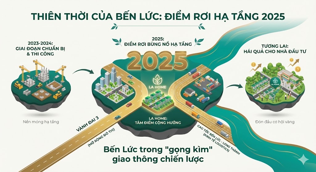 Phân tích về LA Home không chỉ dừng lại ở vị trí địa lý, mà là câu chuyện về sự cộng hưởng hiếm hoi giữa hai động lực tăng trưởng mạnh mẽ nhất: Đô thị hóa (Vành đai 3) và Công nghiệp hóa (Cao tốc Bến Lức – Long Thành).