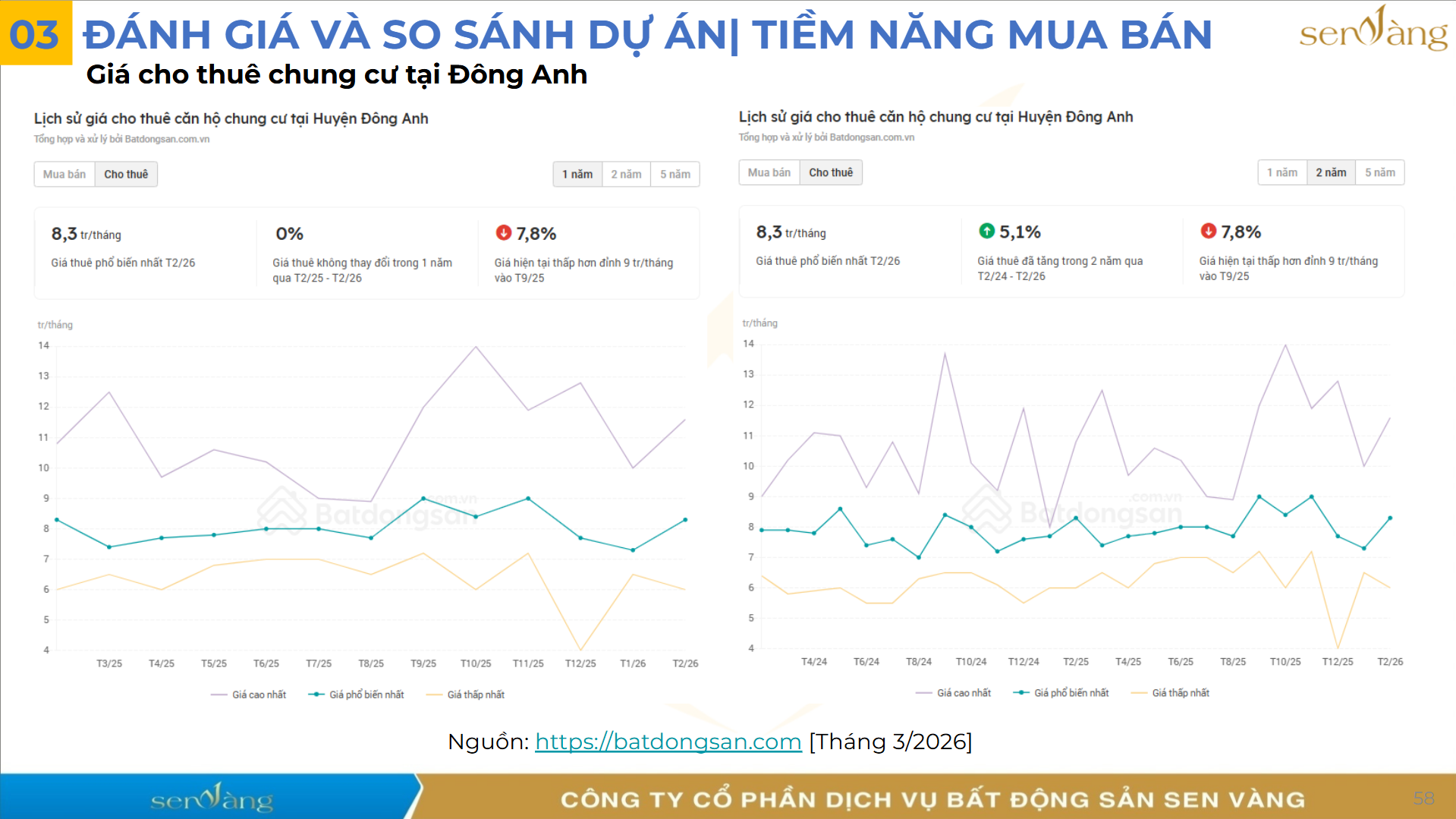 - Lịch sử giá cho thuê chung cư tại khu vực Đông Anh cao nhất chỉ đạt khoảng 8,3 triệu/tháng, biên độ lợi nhuận cho thuê hoàn toàn không tương xứng với mức giá vốn bỏ ra.
