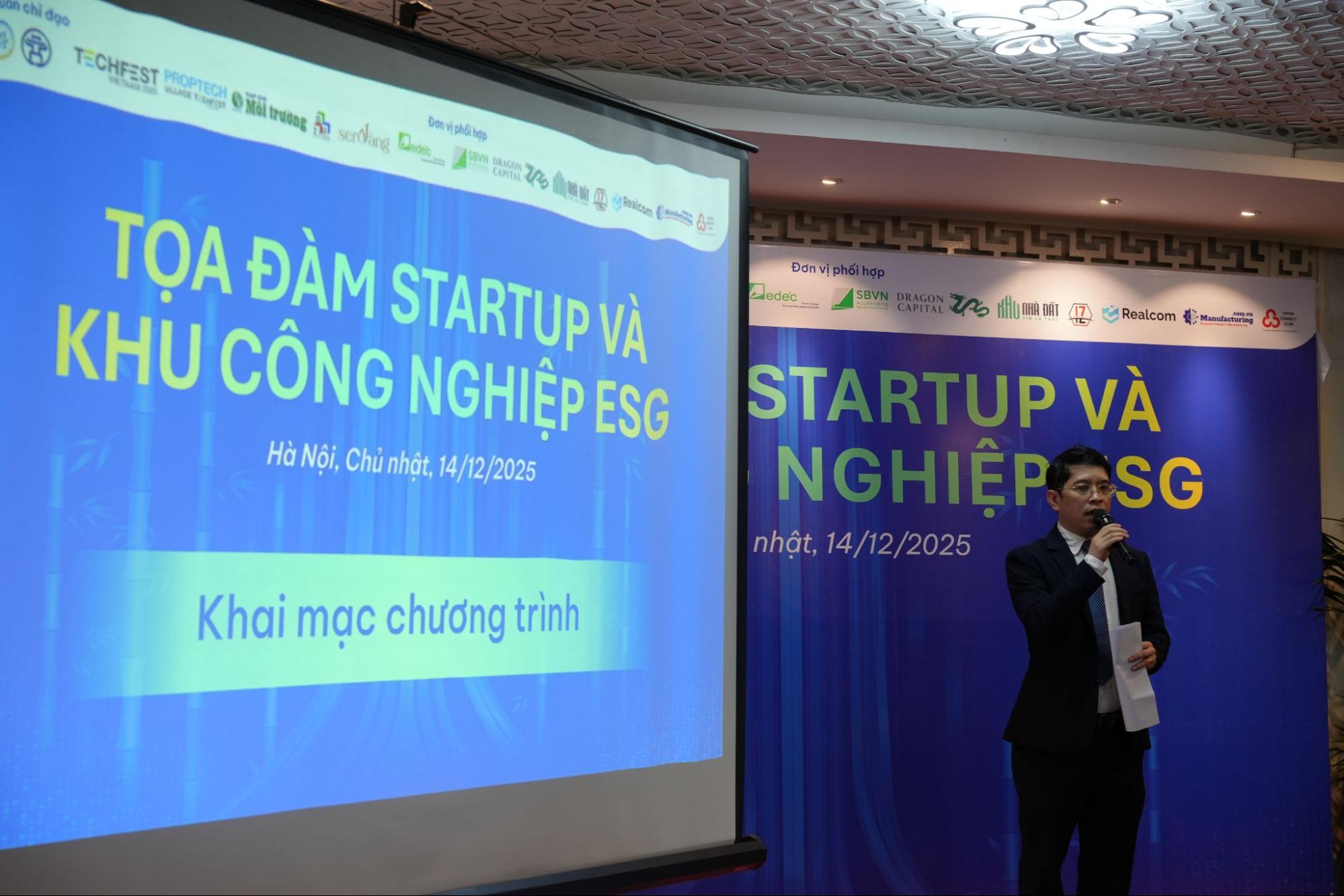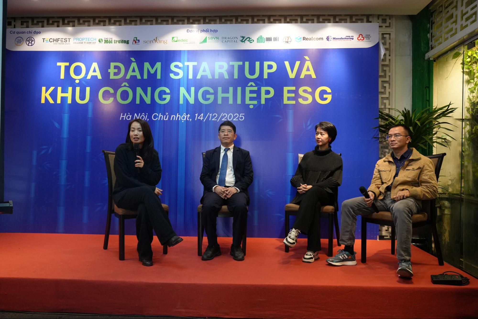 Ngày 14/12/2025 vừa qua, Tọa đàm “Startup và Khu Công nghiệp ESG” – một hoạt động chuyên môn trọng điểm trong chuỗi sự kiện bên lề TECHFEST Việt Nam 2025, đã diễn ra thành công tốt đẹp tại Lục Thủy Coffee, Hoàn Kiếm, Hà Nội. Sự kiện do Bộ Khoa học và Công nghệ, UBND Thành phố Hà Nội chỉ đạo, với sự phối hợp của Làng Proptech Community, Tạp chí Môi trường, Viện Khoa học Công nghệ Đô thị Xanh và nhiều đơn vị uy tín khác.