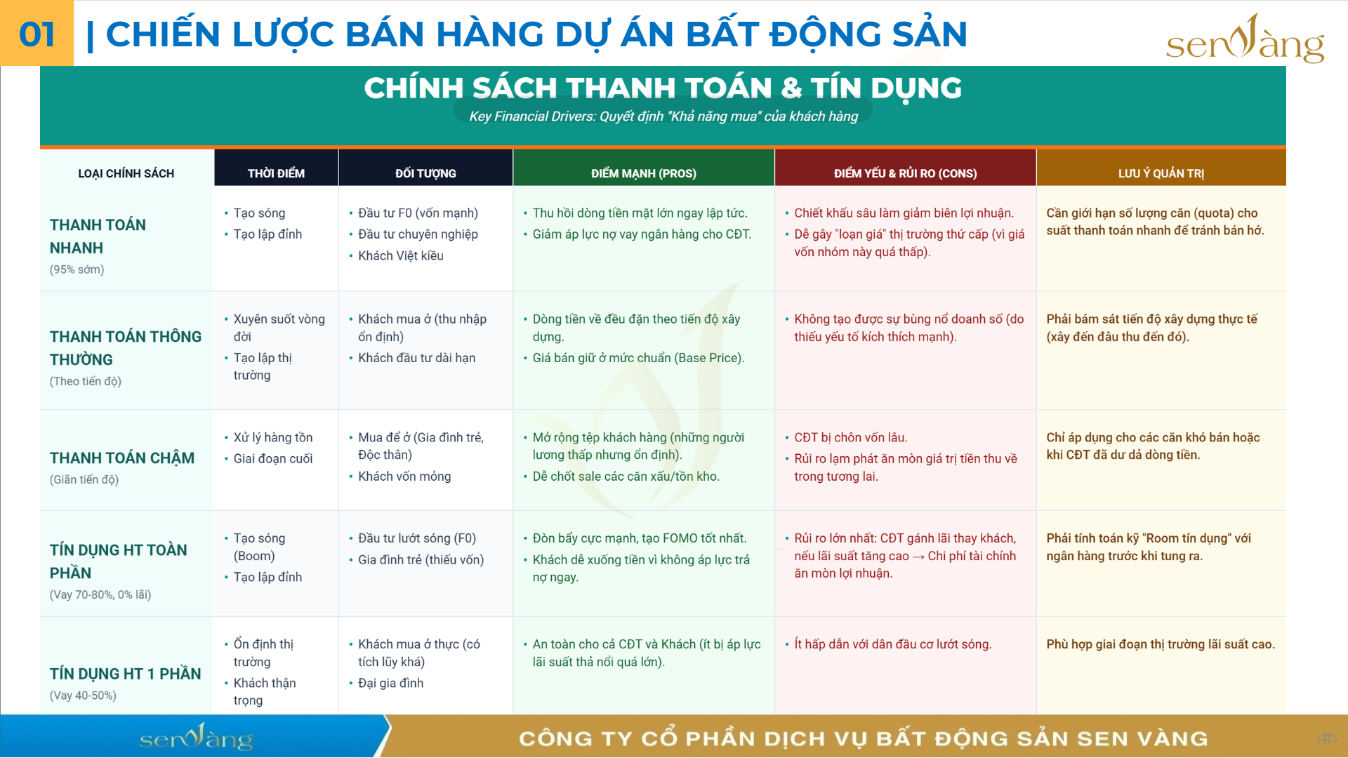 Cầu nối biến Nhu cầu thành Sức mua: Một chính sách bán hàng hợp lý, đánh đúng vào khả năng tài chính của khách hàng có thể kích cầu mạnh mẽ, biến nhu cầu tiềm năng thành giao dịch thực tế. Nhiều dự án dù có sản phẩm tốt nhưng thất bại vì chính sách không phù hợp.