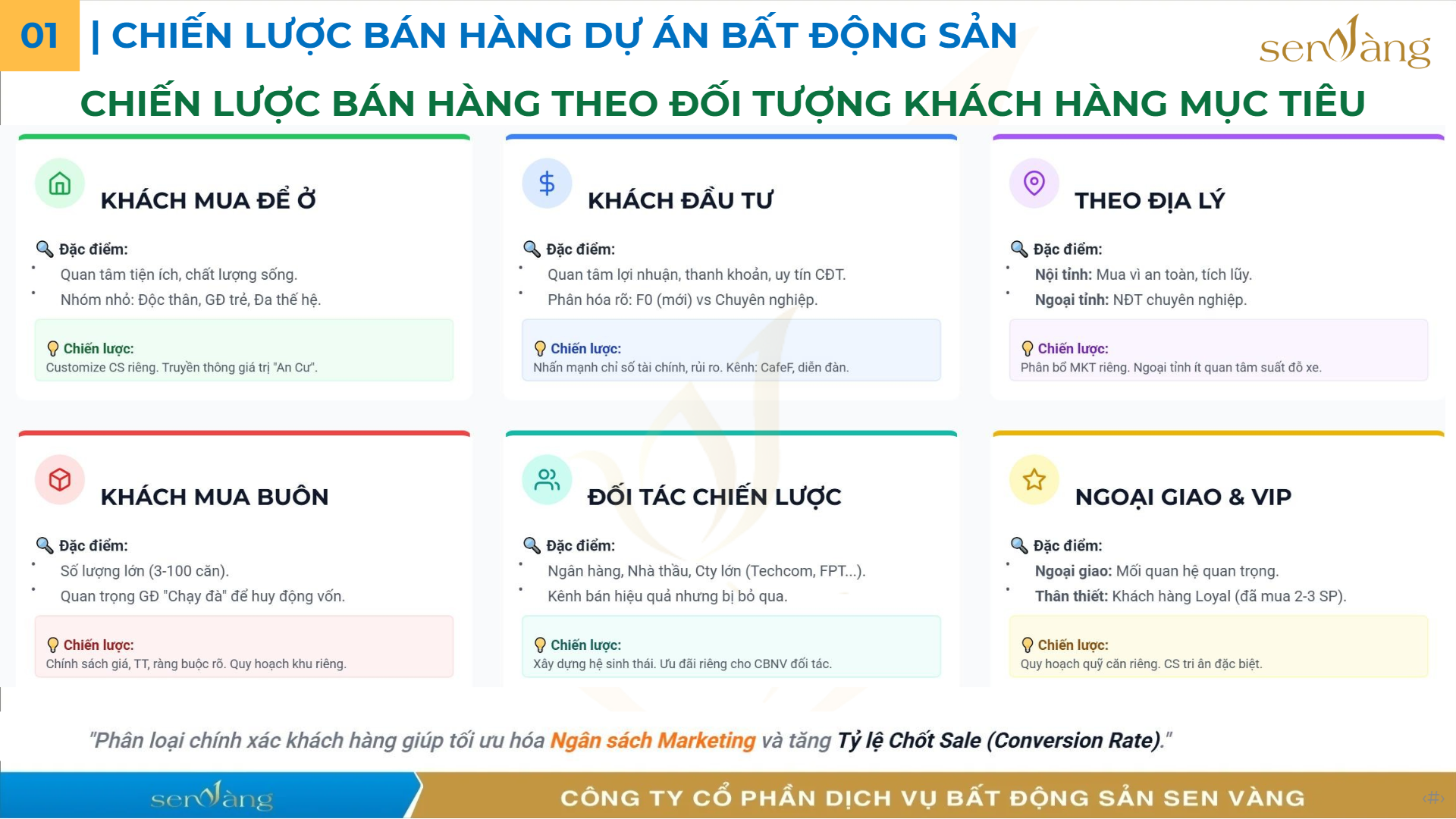Để xây dựng một chiến lược bán hàng thành công, chủ đầu tư cần dựa trên hai cơ sở chính: mục tiêu theo từng giai đoạn và đặc điểm của từng đối tượng khách hàng.