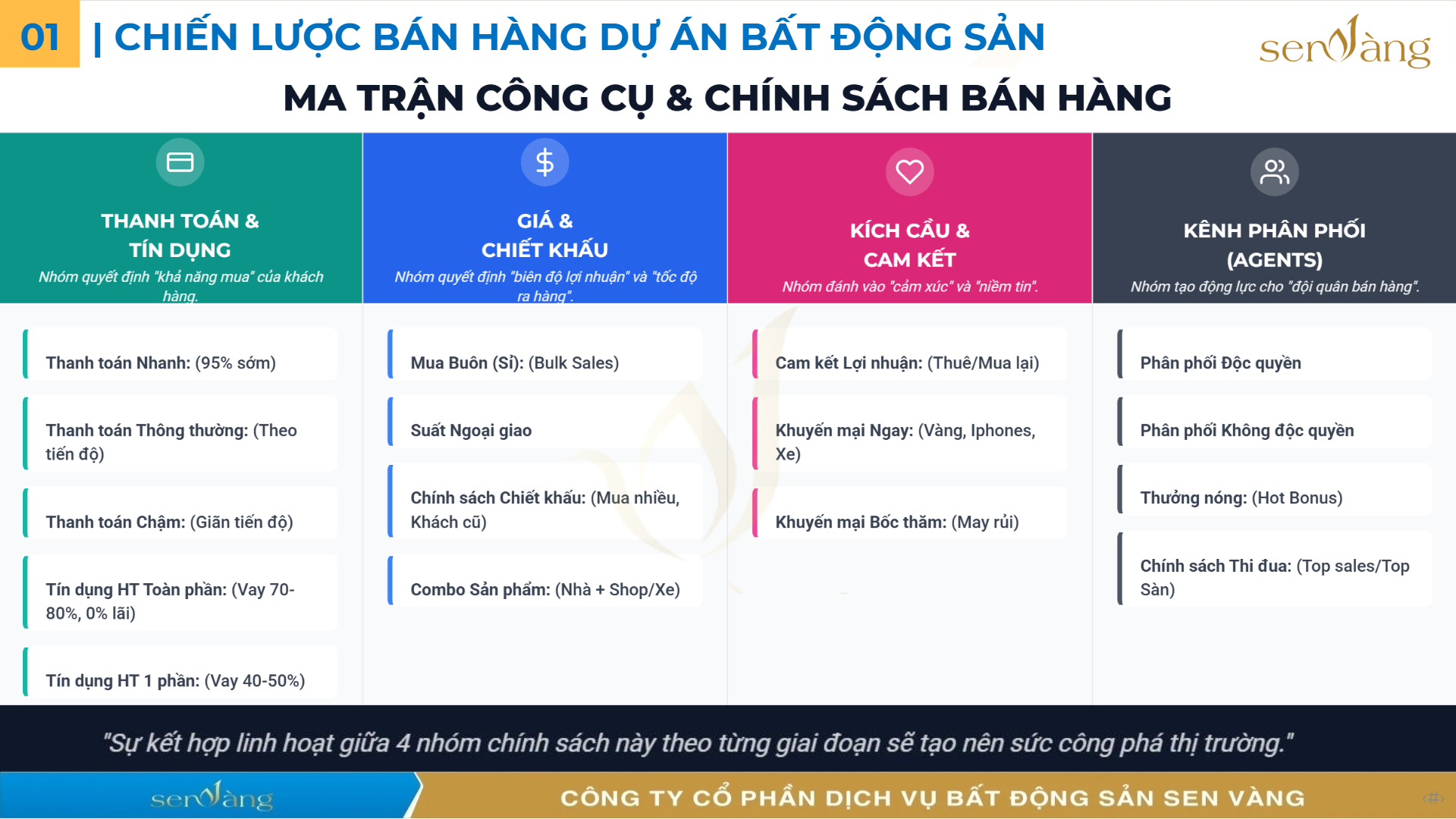 Trong bối cảnh thị trường BĐS giai đoạn 2025-2026, vai trò của chính sách bán hàng đã được nâng lên một tầm cao mới, không chỉ là công cụ bán hàng mà còn là một bộ phận cốt lõi trong chiến lược phát triển dự án.