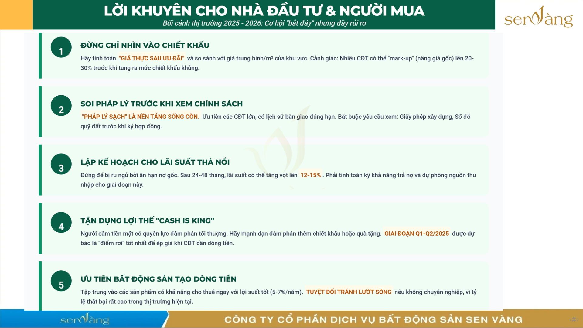 Trên đây là những thông tin tổng quan về “Phân Tích Chính Sách Bán Hàng Bất Động Sản Giai Đoạn 2025-2026: Cuộc Đua Dòng Tiền và Rủi Ro Thị Trường ” do Sen Vàng Group cung cấp. Hy vọng với những thông tin trên giúp chủ đầu tư, nhà đầu tư và doanh nghiệp bất động sản có cái nhìn tổng quan về tiềm năng phát triển bất động sản. Ngoài ra để xem thêm các bài viết về tư vấn phát triển dự án, anh chị, bạn đọc có thể truy cập trang websenvangdata.com/.