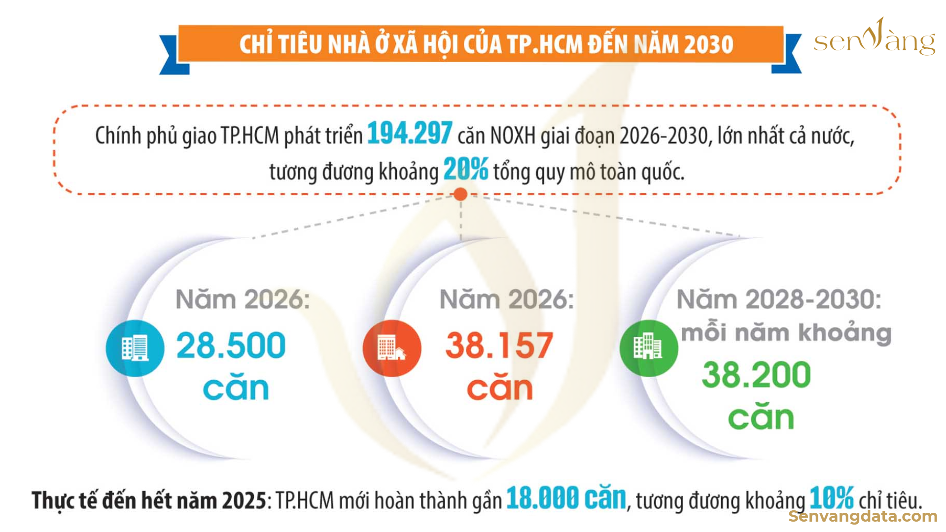 Chỉ tiêu NOXH của TP HCM đến năm 2030. Nguồn Sen Vàng tổng hợp